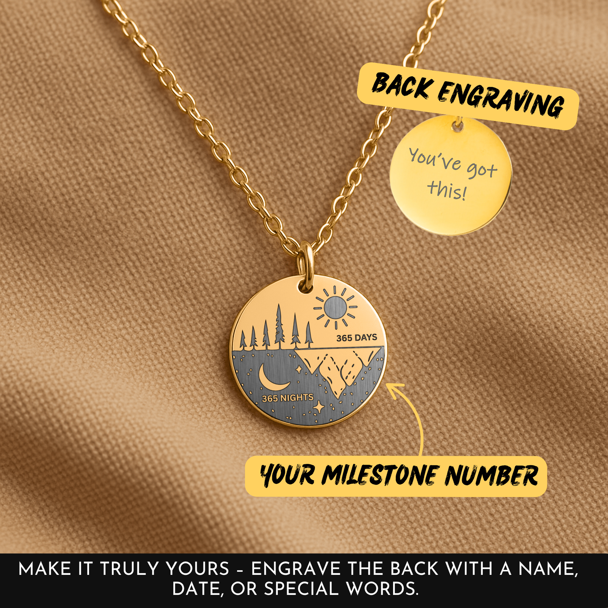 Mark a year of strength and healing with this meaningful “365 Days and 365 Nights” sobriety necklace — a beautiful reminder that recovery is lived one day at a time.