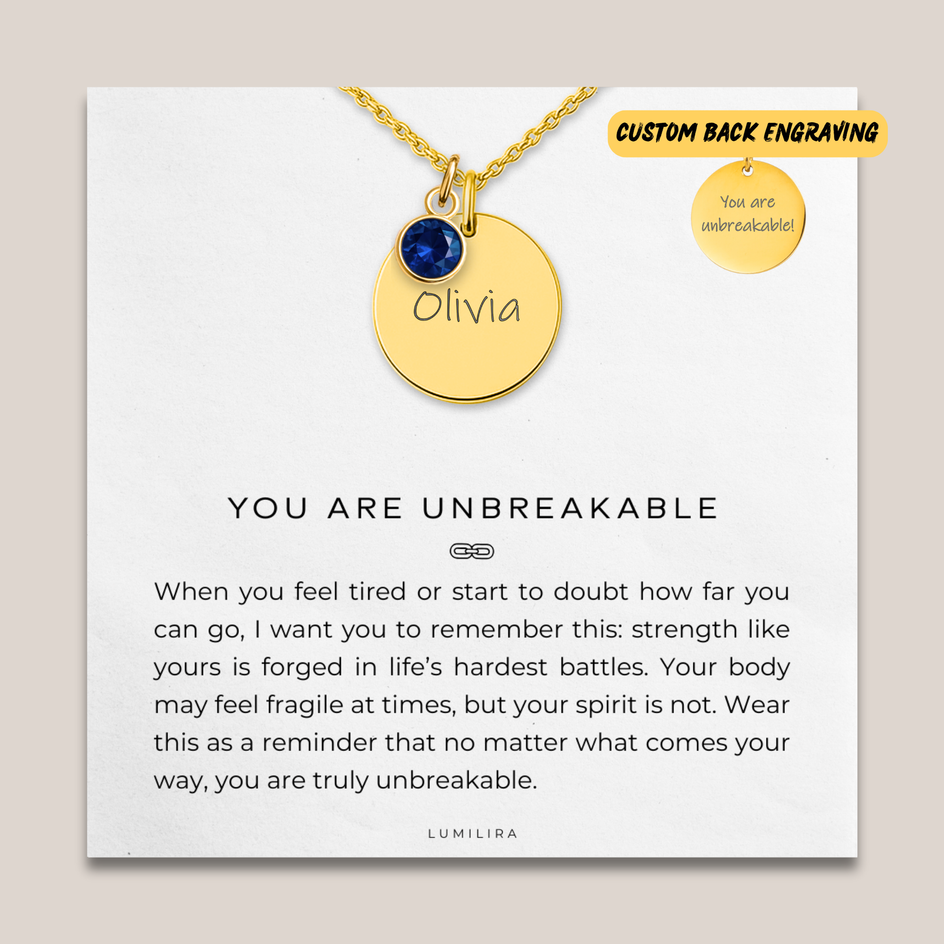 Each necklace arrives beautifully packaged with the โYou Are Unbreakableโ message card, creating a heartfelt unboxing experience sheโll remember and cherish. ๐