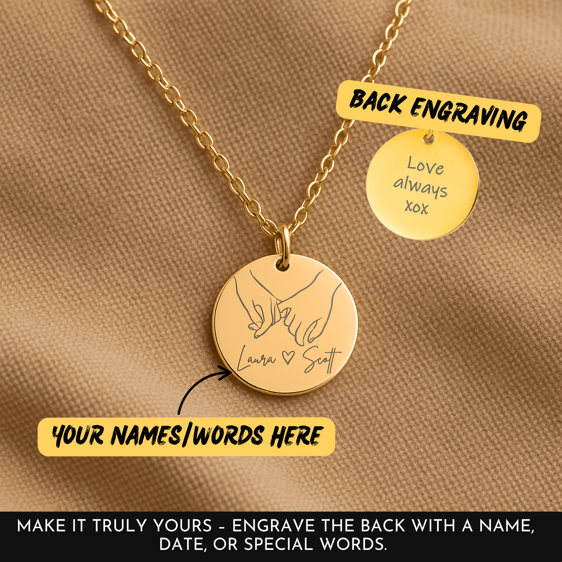 Gift her the pinky promise necklace with both your names, symbolizing an eternal promise of love. Perfect for anniversaries or simply to cherish your bond every day.