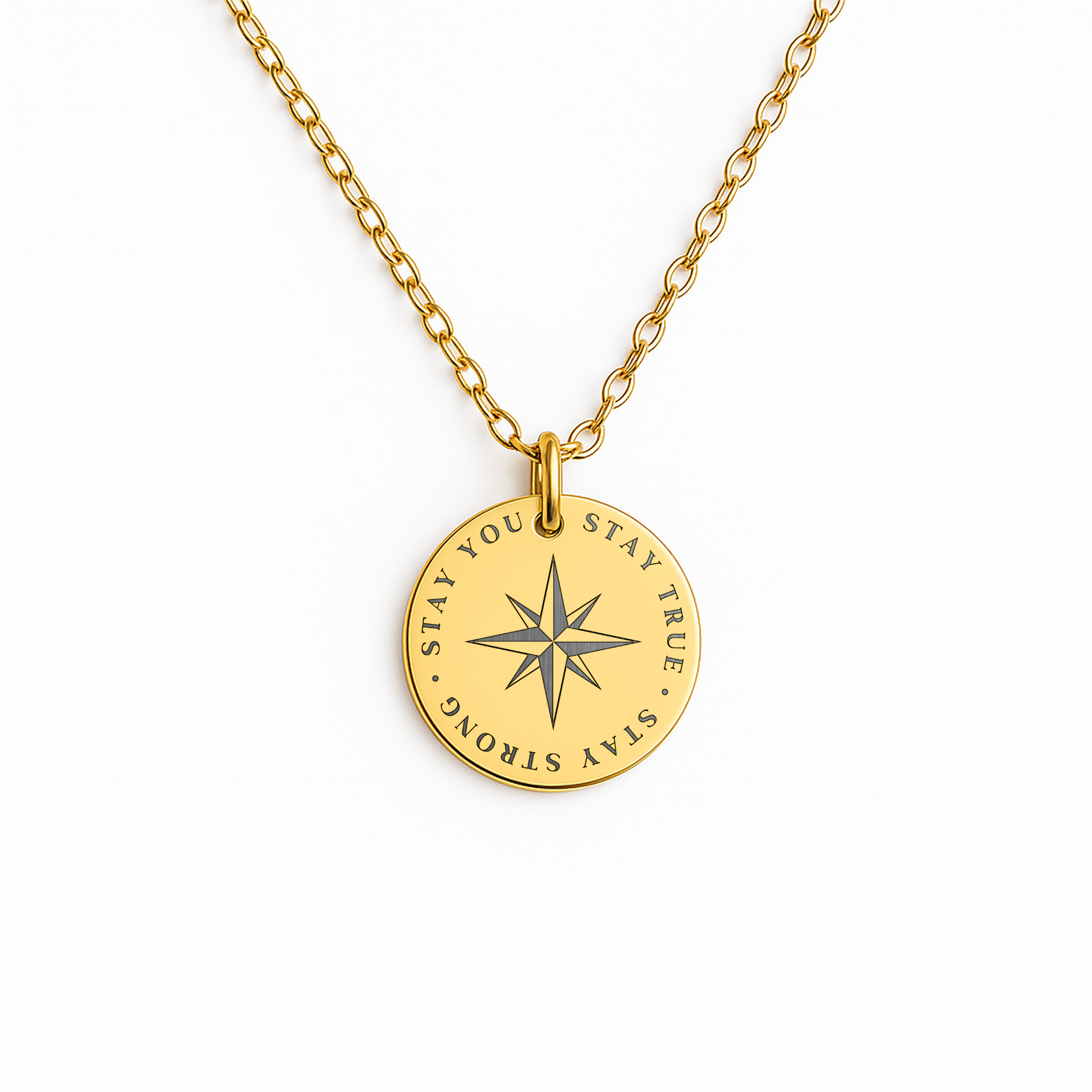 With its engraved compass and the words “Stay true, stay strong, stay you,” this coin pendant is more than a keepsake — it’s a reflection of everything you became that night. On the back, your own custom touch: a date, a place, a line that only you understand.