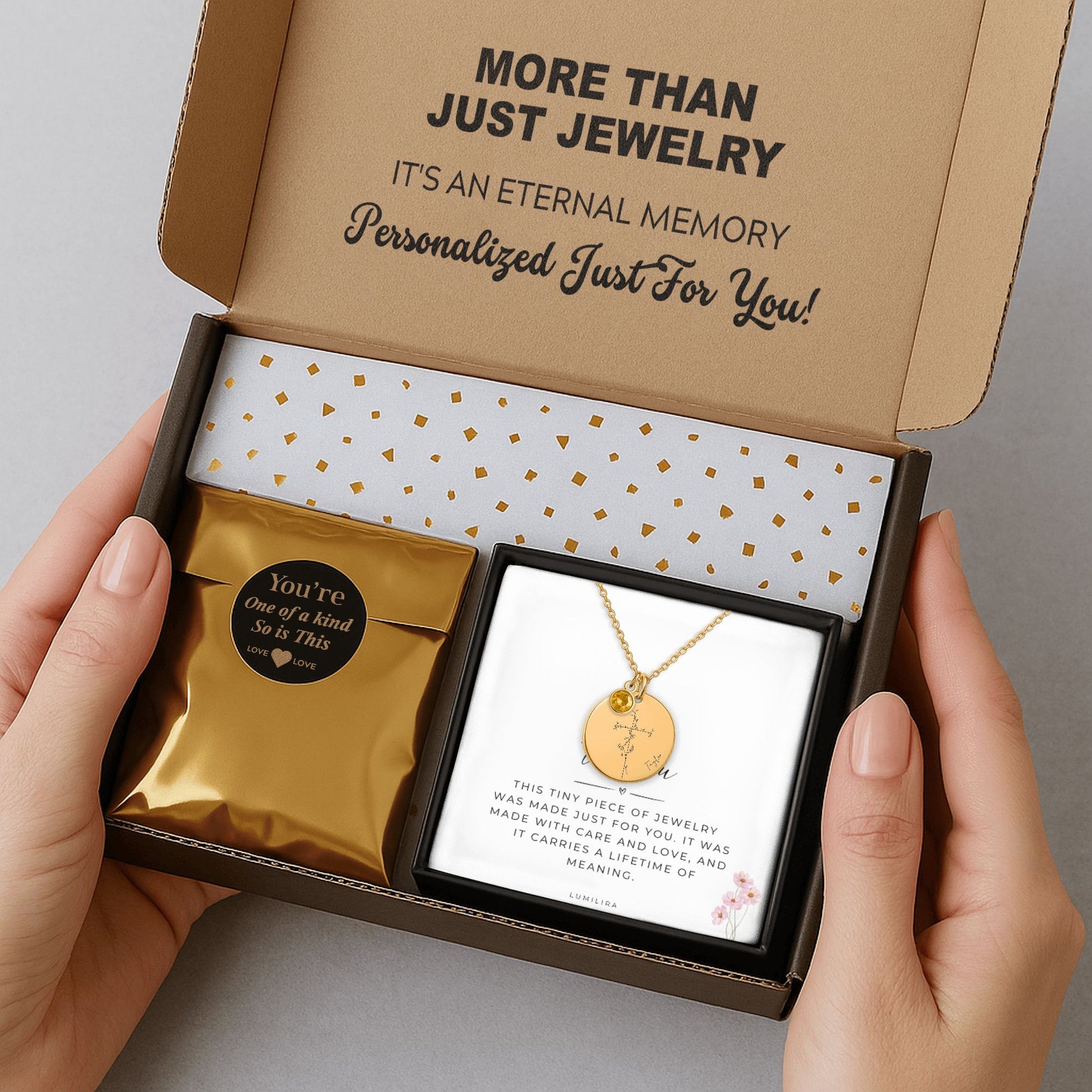 Personalize it with her name, birthstone, and a custom back engraving — whether it’s a Bible verse, a meaningful scripture, or words that remind her of God’s presence and peace. Every detail makes it uniquely hers and deeply personal.