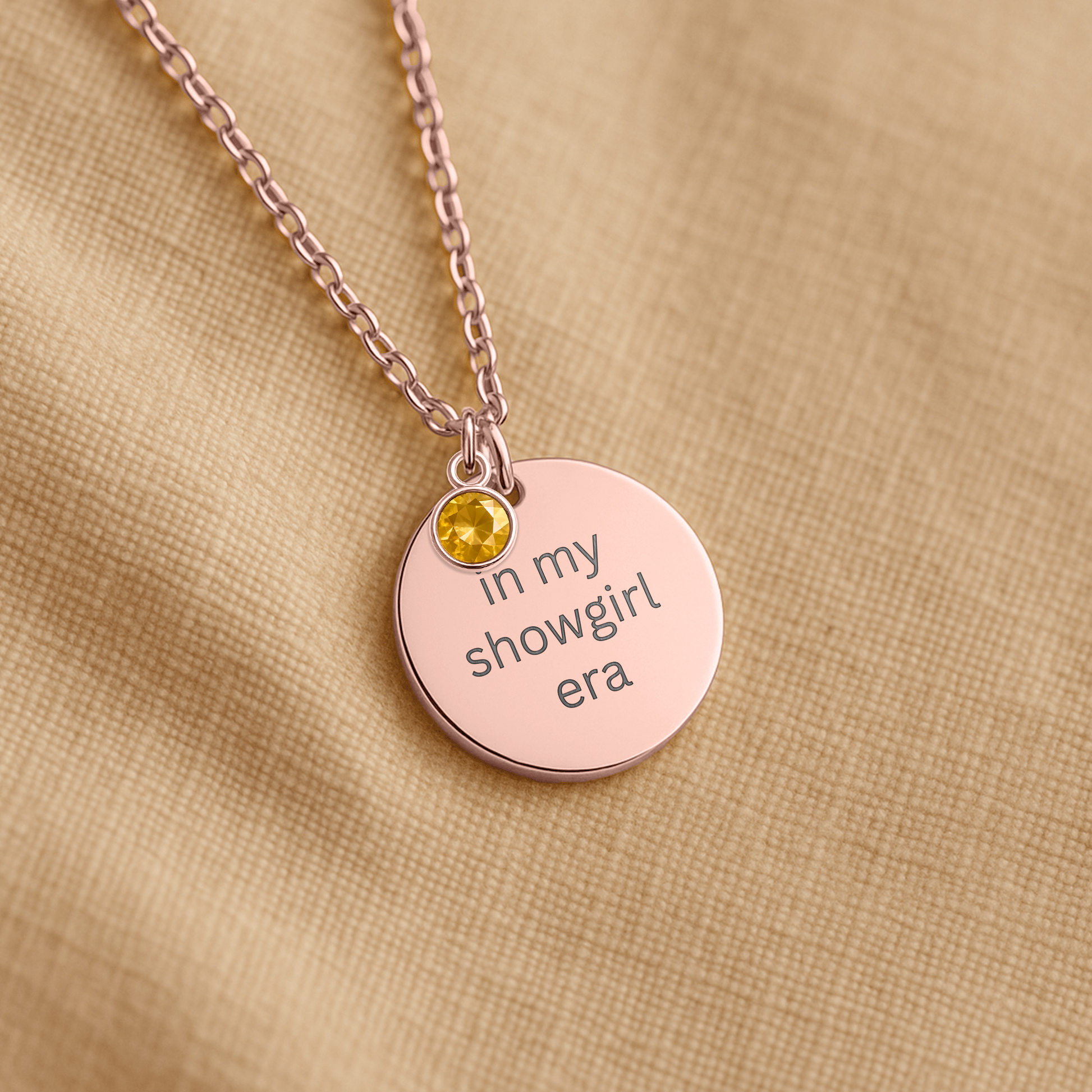 In My Showgirl Era Necklace with Birthstone, Engraved Showgirl Era Pendant, Christmas Gift for Her, Daughter Gift