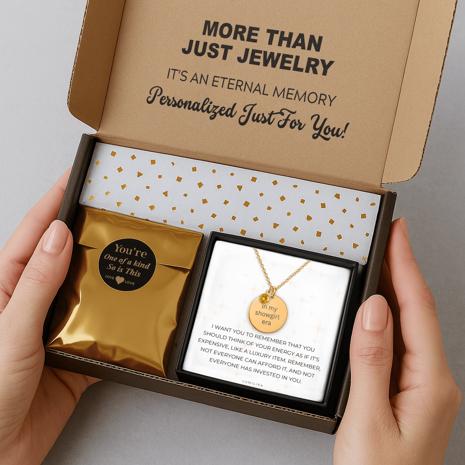 For the woman stepping boldly into her showgirl era, this engraved coin necklace is a beautiful reminder that her energy is rare, powerful, and worth protecting. Inspired by the music and moments that make her feel iconic, this piece celebrates self-worth and confidence in the most elegant way.