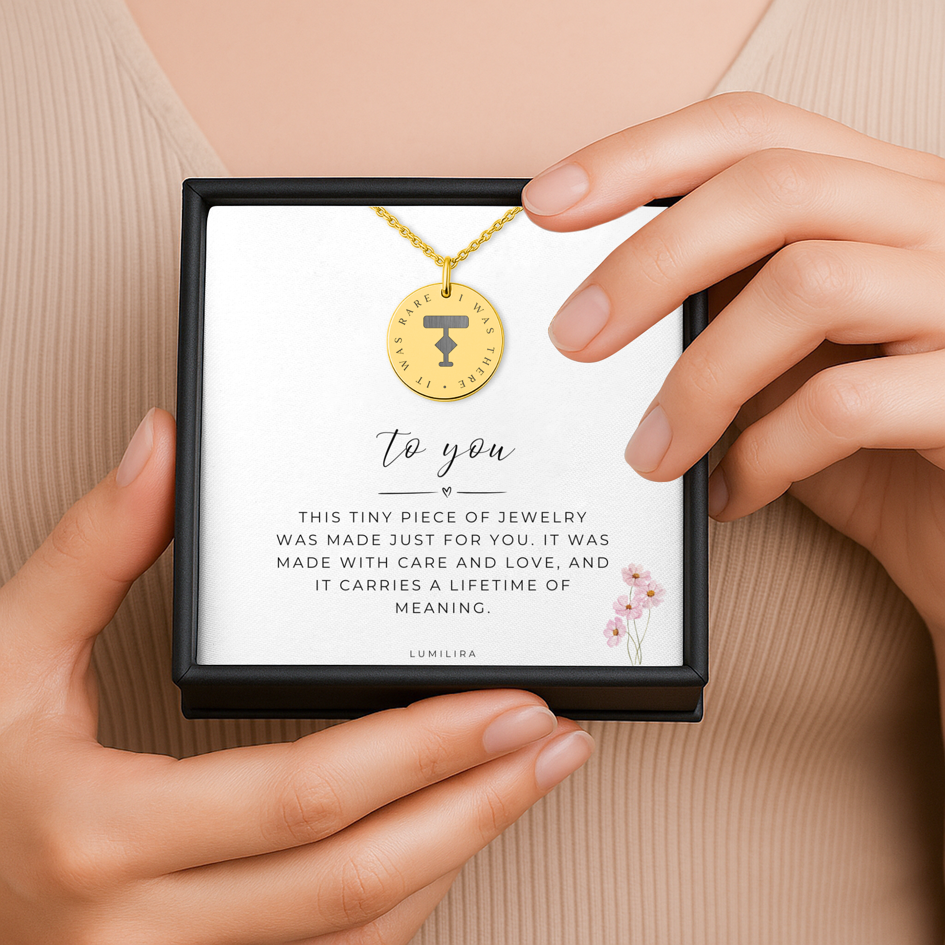 This necklace is more than a piece of jewelry, this keepsake celebrates the magic of that concert — the songs, the friendship, the feeling of finally being there. With a bold etched symbol and custom back engraving, it becomes a personal reminder of the moment when everything aligned and the music meant everything.