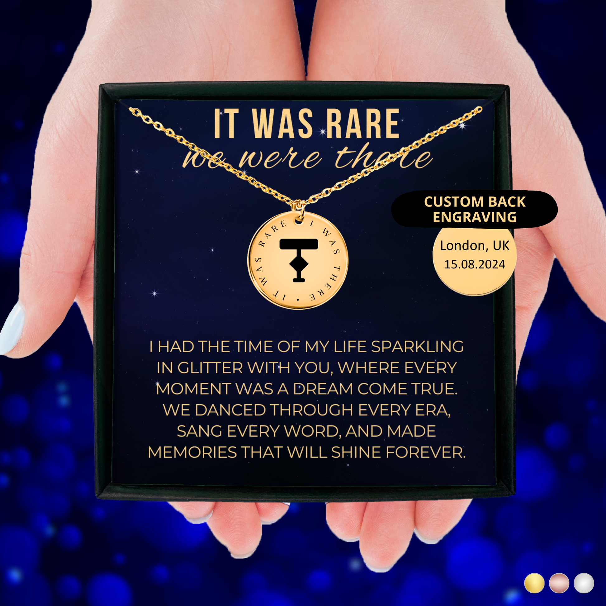 1οΈβ£ Choose your preferred necklace finish: Silver, Gold, or Rose Gold