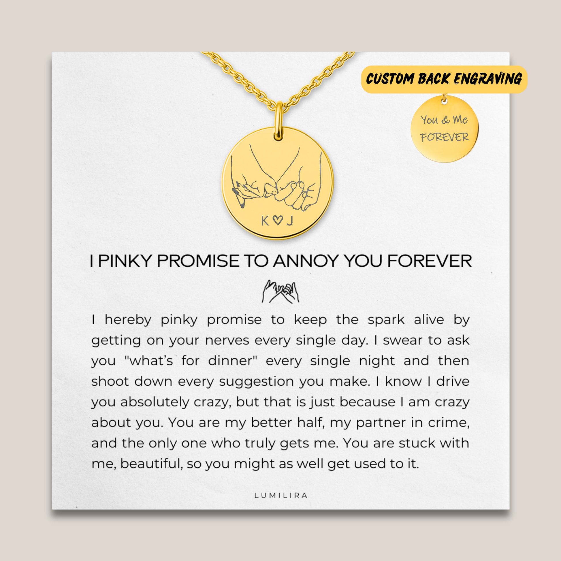Pinky Promise Necklace with Custom Initials and Back Engraving: Funny Pinky Swear Jewelry Gift for Wife, Girlfriend, Fiancée for Anniversary