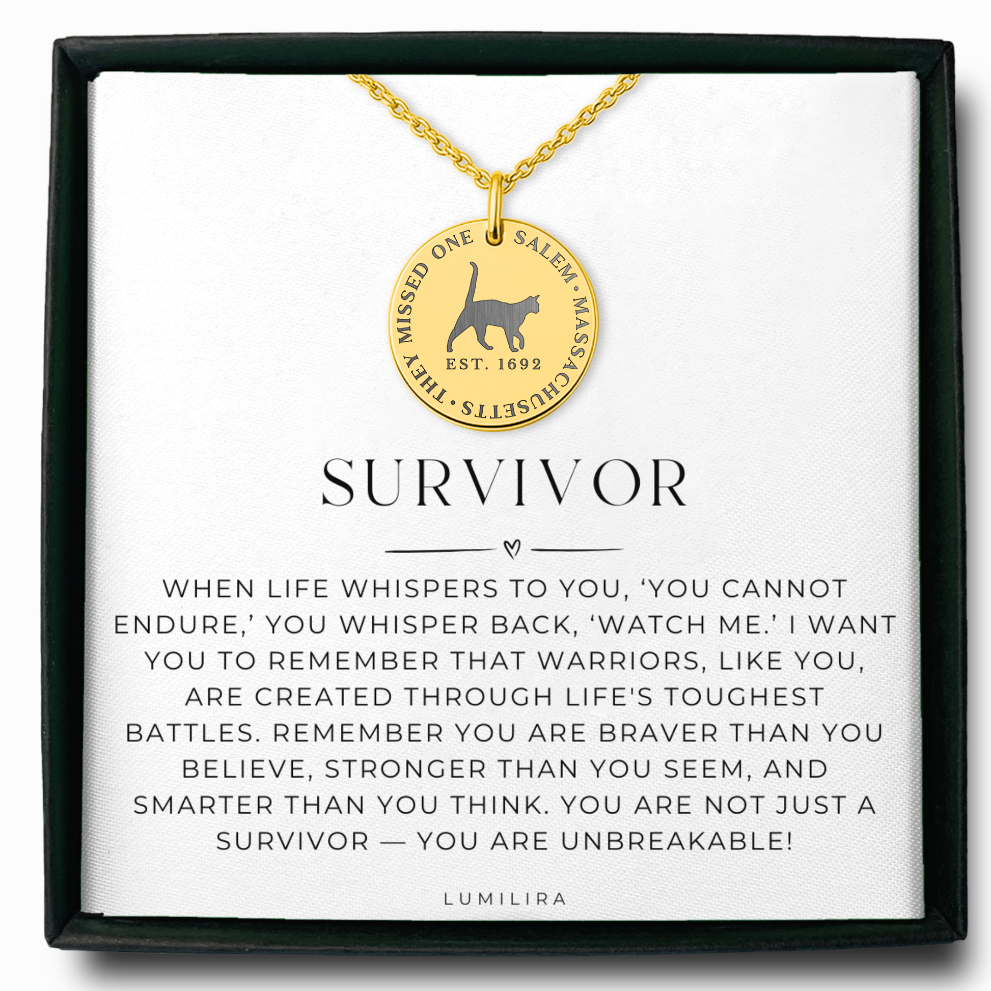 Salem Cat Necklace, “They Missed One” Jewelry, Gothic Survivor Necklace, Warrior Encouragement Jewelry, Halloween Cat Pendant, Witchy Gift