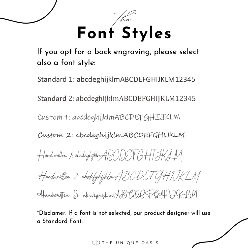 π If no font is selected, our design team will use a Standard Font by default