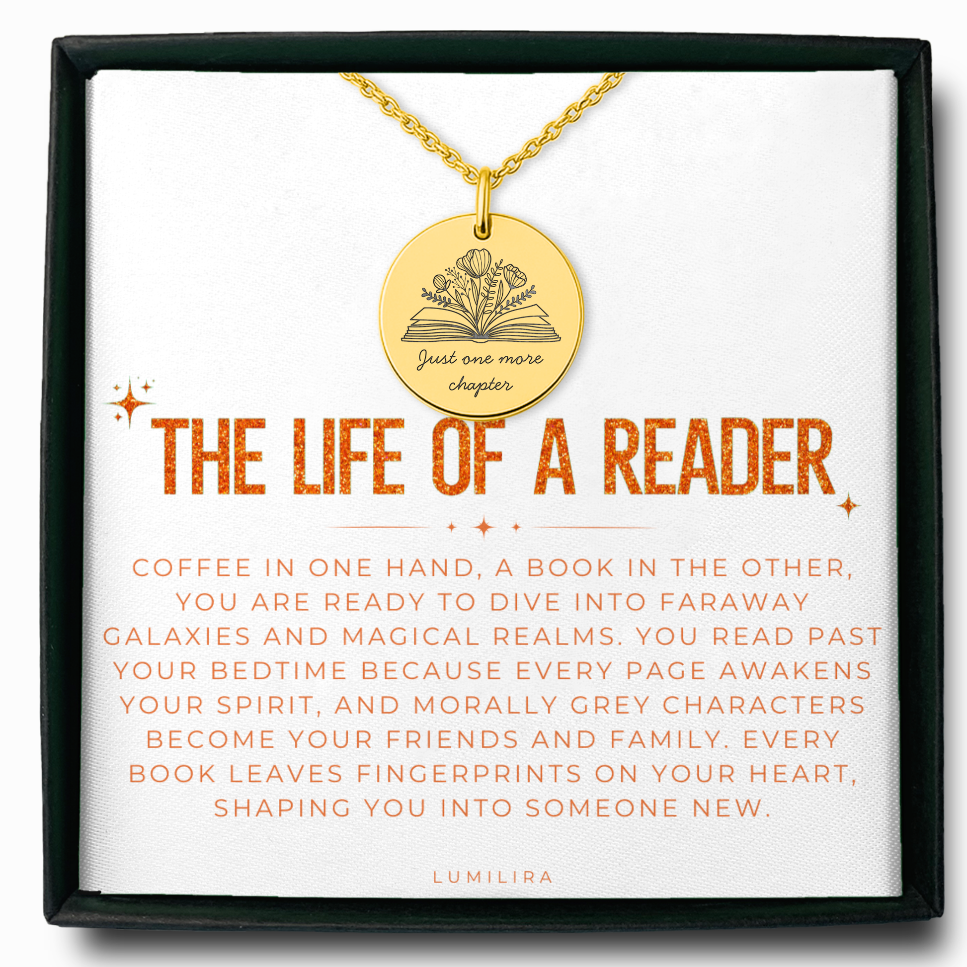 For the bookworm who always whispers “just one more chapter” before turning out the light, this necklace is a heartfelt reminder of the joy found in every page.